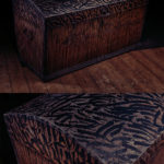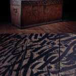 Im Haushalt fanden wir den Abschiedsbrief eines in den Krieg ziehenden Soldaten an dessen Familie. Wir verarbeiteten Teile des Textes in diese abstrakte Kalligraphiegestaltung.