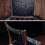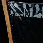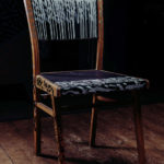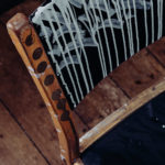 Handgefertigter Stuhl, den der Künstler als Junge aus der Schule entwendet hat. Stunden des Abschreibens und Nachsitzens stecken in diesem Stück. Aus der Sauklaue damals wurden kunstvolle Kalligraphieschriftzüge und Abstrakte Gestaltungen.